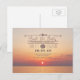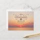 lindo cartão postal de salvar a data do casamento na praia com cores coral, roxo e laranja, pôr do sol à beira-mar. Estilo de tipografia manuscrita chique - convite perfeito para temas de casamento na praia modernos e vintage.
