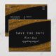 Cartão Postal de Poupar a Data Preto com Brilho Dourado. Personalize com qualquer texto. Itens correspondentes estão disponíveis.