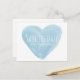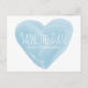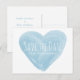 Cartão postal de salvamento de data com coração de aquarela moderno e elegante, com um coração de aspecto aquarelado azul, lindo e caprichoso. Este salvamento de data é fácil de personalizar com os detalhes do seu casamento. Para mais opções de personalização, clique no botão Personalizar.