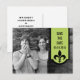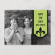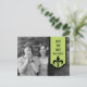 Cartão postal de salvar a data com banner Flor de Lis moderno e simples em verde brotos tenros, apresentando um banner com borda rendilhada adornado com um floreio damasco chic. Este cartão postal de salvar a data é perfeito para anunciar seu casamento elegante. Fácil de personalizar, basta adicionar uma foto de um casal fofo e os detalhes do seu casamento nos campos de texto fornecidos. Clique em "Personalize" para encontrar mais opções de personalização.