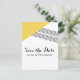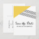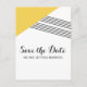 Cartão postal de Salvar a Data moderno e trendy com Listras Geométricas com um triângulo amarelo e um fino acento listrado. Este cartão postal simples, mas elegante, é configurado para ser facilmente personalizado com as informações do seu casamento. Encontre mais opções de personalização clicando em Personalizar.