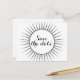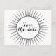 Sofisticado e elegante Cartão Postal de Salvar a Data Deco Retro com um design circular de explosão solar ornamental art déco. Fácil de personalizar, basta adicionar os detalhes do seu casamento nos campos de texto fornecidos. Clique em "Personalizar" para encontrar mais opções de personalização.