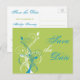 Este cartão postal floral verde primavera, azul turquesa e branco combina com o convite de casamento mostrado abaixo. Todo o texto é personalizável. Se houver outros itens correspondentes que você precise, envie um e-mail com sua solicitação para niteowlstudio@gmail.com.
