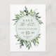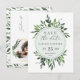 cartão postal de save the date com foto em aquarela de folhas. Com belas folhas em aquarela e tipografia moderna e ousada, este convite save the date está na tendência certa e é perfeito para qualquer época do ano. Parte de uma suíte de casamento