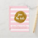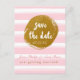 Cartão postal de Save The Date com Listras Rosa e Folha Dourada. Itens combinando disponíveis.