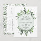 cartão postal de save the date floral de aquarela frondosa. Com belas folhas de aquarela e tipografia moderna e ousada, este convite de save the date está na moda e é perfeito para qualquer época. Parte de uma suíte de casamento