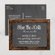 Cartão Postal de Save The Date de Quadro Negro de Madeira Rústica. Personalize com qualquer texto.