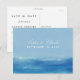 Cartões-postais de casamento com tema marinho com ondas de água marinha em aquarela e tipografia simples e elegante e fontes modernas sem serifa. Projetado para combinar com nossos convites de casamento elegantes de aquarela oceânica.