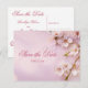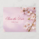 Cartões postais de Save the Date de casamento elegantes com flor de cerejeira e texto personalizável - você pode alterar o texto, impresso em fundo rosa