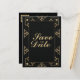 Anúncios de cartão postal de aviso de data personalizáveis em preto e dourado. Inspirado nos anos 20 de Hollywood e em Great Gatsby.