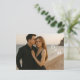 Procurando uma maneira elegante de anunciar o seu casamento? Este cartão-postal personalizável de "guarde a data" permite que você faça o upload da sua foto de noivado favorita, mantendo o design sofisticado e moderno. Com uma disposição de tipos elegante que combina com roupas escuras e ambientes de praia, o verso apresenta um padrão atemporal em azul chinoiserie para um acabamento clássico. Perfeito para casamentos na costa, casais modernos ou qualquer pessoa que queira um toque refinado e pessoal.