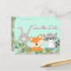 Cartões postais de salve a data do chá de bebê com adoráveis animais da floresta em um fundo de bolinhas verde menta floral. Você pode personalizar facilmente esses cartões postais de salve a data do chá de bebê adicionando simplesmente os detalhes do seu evento.