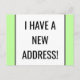 Este design de cartão postal de mudança de endereço minimalista apresenta a mensagem "EU TENHO UM NOVO ENDEREÇO!" na frente, e uma mensagem personalizável no verso. Cartões postais como este podem ser usados para informar amigos e familiares de um novo endereço, um novo número de telefone e outras informações relevantes.