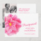 Cartoão de adiamento de casamento com arte de flor camélia vermelha em aquarela na frente e sua própria mensagem e foto do casal no verso. Outros itens de primavera disponíveis. Arte em aquarela e design por Sarah Trett www.sarahtrett.com para www.mylittleedenweddings.com