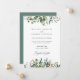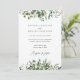 Nosso belo design botânico de folhagem em aquarela é o pano de fundo para os detalhes do seu casamento neste ótimo cartão de anúncio. Os tons suaves da folhagem de folhas verdes dão um toque clássico atemporal ao design, que seria adequado para um casamento em qualquer estação. Com fonte elegante para seus detalhes.