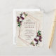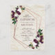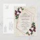 Moderno, trendy e lindo, este design de convite de casamento com cartão postal apresenta um geométrico de cobre falso decorado com flores de plumagem de aquarela, marsala borgonha e folhagens ricas, sobre uma textura de casca de bétula branca falsa. Os nomes do casal e alguns detalhes do casamento estão em uma cor borgonha rica correspondente. O verso do cartão postal permite seu endereço de retorno e mensagem pessoal. Copyright Elegant Invites. Todos os direitos reservados.