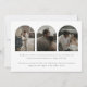 Anúncio de Casamento do Arch de 4 Fotos do Script Moderno. Projetado com 'nós fugimos!' em letras elegantes de roteiro, personalize este cartão de casamento com quatro das suas fotos favoritas de casamento na frente e atrás em lindas pequenas arcas. Personalize ainda mais a sua mensagem de afastamento para amigos e familiares.