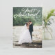 Recem casados! Anuncie o seu casamento com este cartão de anúncio de casamento. Apresenta caligrafia branca de pincel. Personalize adicionando seus detalhes. Este cartão de anúncio de casamento fotográfico é perfeito para um anúncio de elogio e um anúncio de casamento surpresa. Itens correspondentes estão disponíveis.