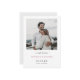 Esta simples carta de apresentação do anúncio de casamento com fotos em chic mostra sua foto na frente. Seus primeiros nomes são destacados em uma elegante sombra de ouro rosa e por amplo espaço em branco com sua data e localização abaixo deles e uma mensagem 'nós amarramos o nó! acima de seus nomes. Este efeito é reforçado pela nossa utilização não convencional de maiúsculas e minúsculas. Embora tenhamos usado todas as maiúsculas para seus nomes, usamos minúsculas exclusivamente para o outro texto na frente, mesmo quando maiúsculas são normalmente exigidas, como em sua cidade e nome de estado, etc. Tomamos esta liberdade no espírito de seguir as regras, a menos que as quebremos de forma consistente, criando assim a nossa própria regra! ;) Além de ter a opção de mudar a cor, a fonte e o tamanho do texto em ambos os lados, é claro que você pode usar maiúsculas onde você vê o ajustado. Você também pode alterar ou excluir campos de texto - você pode, por exemplo, mudar 'nós amarramos o nó!' para 'nós nos casamos!' ou algo mais. Ou você pode incluir seu sobrenome e seus primeiros nomes na frente, ou alterar o formato de data, ou excluir o local sem substituí-lo pelo seu próprio, para uma aparência ainda mais simples. Escolhemos cantos nítidos padrão como a forma padrão da placa, mas cantos arredondados também funcionam maravilhosamente com esta design. Então, verifique ambas as opções no modo de edição e veja qual é a sua capacidade! A cor de texto padrão na frente é preta e na parte de trás é uma cinza muito escura que é preta. Você pode alterar qualquer cor ou fonte do texto para se adequar ao seu estilo. Como fundo padrão, na frente escolhemos uma base transparente que permite que a cor do papel sirva simplesmente como tom base. Na parte de trás, escolhemos uma cor de fundo chamada Fumaça Branca, é uma cinza muito clara que é principalmente branca. Você pode mudar o fundo de cada lado se quiser. Colocamos algum texto de marcador de posição no verso para que você exclua e substitua por sua própria mensagem, com ou sem seus nomes, se você quiser assinar manualmente quando receber os cartões. Mas você pode simplesmente optar por excluir nosso texto de marcador de posição e deixar o vazio de trás completamente para que você possa escrever uma mensagem manualmente em cada cartão e assinar seus nomes. O tipo de papel padrão, matte, tem um calor suave e resiste a manobras, então é uma escolha excelente para escrevendo sua própria mensagem. Você pode editar isso e escolher outro tipo de papel. Em qualquer caso, lembre-se de que há texto de marcador de posição também no verso e apague todo o nosso texto de amostra/marcador de posição em ambos os lados do cartão, assim como nossa foto de amostra. Faça com que este cartão de anúncio elegante e minimalista seja exclusivamente seu com as ferramentas intuitivas de design, sua foto favorita e sua inspiração!