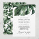 Um convite de casamento com folha de palmeira ousada e linda. As folhas em aquarela em tons verdes suaves são perfeitamente equilibradas no fundo branco, dando um visual sofisticado. Parte de uma coleção de casamento atual.