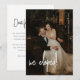 Anúncio de Casamento de Fotografia de Elopamento de Roteiro Minimalista Moderno. Projetado com letras de roteiro elegantes na frente e no verso do cartão, personalize este cartão de anúncio de casamento simples com uma foto de casamento favorita, seus nomes e data de casamento, e sua mensagem de elopamento para amigos e familiares no verso.