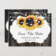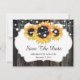 Casamento personalizado de madeiras rústicas e girassóis, salvo cartões de data com girassóis em um fundo de madeira de celeiro adornado com luzes de cordas. Nosso casamento floral rústico, salvar o cartão de data é perfeito para um país rústico, quintal, jardim ou festa de casamento de celeiro inspirado pelas flores de girassol.