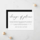Um design simples e elegante para você anunciar uma mudança nos seus planos de casamento. O design apresenta um título "mudança de planos" em caligrafia moderna preta, sua mensagem em fonte sans serif preta, em um fundo branco. O verso é em preto sólido.