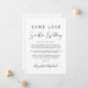 Se as circunstâncias exigirem que você reduza o tamanho do seu casamento, você pode informar sua lista original de convidados com este anúncio de casamento menor, moderno e minimalista, porém elegante. "Mesmo Amor, Casamento Menor" é escrito em uma mistura de tipografia simples e uma fonte contemporânea. Você pode personalizar facilmente sua mensagem, adicionar seus nomes em uma fonte com estilo de assinatura e adicionar o site do seu casamento no verso para que amigos e familiares encontrem mais informações, como links de transmissão ao vivo da cerimônia.