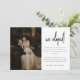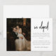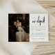 Anúncio de Casamento Fuga com Foto de Roteiro Minimalista. Adicione sua foto de casamento favorita no lado esquerdo do cartão e sua mensagem de fuga para amigos e familiares no lado direito. Personalize ainda mais com suas iniciais no verso.