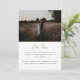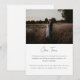Anúncio de Casamento Fuga Minimalista Moderna em Foto. Personalize com os nomes da noiva e do noivo em letras cursivas elegantes, sua foto de casamento favorita e sua mensagem de fuga para familiares e amigos.