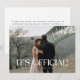 Anúncio de Casamento Fuga Minimalista Moderno. Adicione sua foto de casamento favorita, os nomes dos noivos e a data do casamento na frente do cartão, bem como a mensagem de casamento para amigos e familiares no verso.