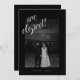Anúncio de Casamento Fuga Minimalista Preto Foto Retro. Adicione seus nomes e foto de casamento favorita na frente, e sua mensagem de fuga para familiares e amigos no verso.
