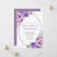 Flores em aquarela em violeta ultra, roxo e rosa com folhas verdes e gipsófila sobre um desenho geométrico de terrário. Texto caligrafado elegante à mão em uma tonalidade de roxo misturado com uma fonte moderna. A parte de trás do cartão é uma tonalidade de roxo que combina com as flores no buquê. Se precisar de ajuda, por favor envie um e-mail para shutterbug600@yahoo.com.