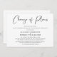 Se circunstâncias como as diretrizes de distanciamento social exigirem que você reduza a presença no seu casamento, você pode informar familiares e amigos na sua lista de convidados estendida original com este anúncio de casamento reduzido moderno e minimalista, porém elegante, em preto e branco. "Mudança de Planos" é escrito em uma fonte estilosa e você pode personalizar facilmente a mensagem de redução do casamento com mais detalhes e adicionar qualquer transmissão ao vivo da cerimônia, celebrações futuras e informações do site do casamento.