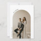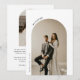 Anúncio de Casamento Minimalista Arco 2-Foto Fuga. Personalize com duas das suas fotos de casamento favoritas na frente e atrás em um belo arco, e adicione seus nomes, data do casamento e sua mensagem de fuga para amigos e familiares.