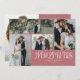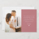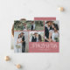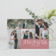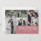 Vintage e cartão de anúncio de casamento elegante com um texto tipográfico misturado com letras de escrita e serif que diz "Newlyweds" com uma grelha fotográfica divertida. O fundo é rosa.