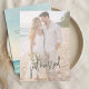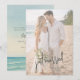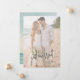 Compartilhe seu momento de recém-casado com este anúncio de casamento de fuga para a praia moderno, apresentando um design de oceano em aquarela suave combinado com um layout de foto completa. Perfeito para casais que escolheram uma cerimônia íntima à beira-mar, casamento em destino ou fuga privada, este anúncio combina a beleza natural da costa com tipografia moderna e limpa.