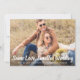 Se as circunstâncias exigirem que você reduza o seu casamento para um microcasamento, você pode informar sua lista original de convidados com este anúncio de casamento reduzido. A frente apresenta sua fotografia de noivado favorita e "Mesmo Amor, Casamento Menor" escrito em grande letra cursiva branca contemporânea na parte inferior da sua foto, e abaixo você pode personalizar seus nomes e o anúncio de redução do casamento. No verso, você pode personalizar sua mensagem em mais detalhes e adicionar qualquer informação de transmissão ao vivo e site de casamento, tudo em tipografia branca contra um fundo azul clássico.