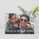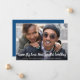 Se as circunstâncias exigirem que você reduza seu casamento para um microcasamento, você pode informar sua lista de convidados original que seu amor e casamento continuarão, mas agora em uma escala menor, com este anúncio de casamento reduzido. A frente apresenta sua fotografia de noivado favorita e "Mesmo Grande Amor, Novo Casamento Menor" escrito em grande letra cursiva branca contemporânea na parte inferior da sua foto, e abaixo você pode personalizar seus nomes e o anúncio de redução do casamento. No verso, você pode personalizar sua mensagem com mais detalhes e adicionar qualquer informação de transmissão ao vivo e site de casamento, tudo em tipografia branca contra um fundo azul clássico.