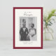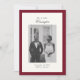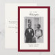 Anuncie seu casamento em estilo com nosso anúncio de casamento vermelho escuro da Foto da Caligrafia Elegante. Esta design moderna, porém sofisticada, apresenta seu nome familiar em uma caligrafia elegante, complementando maravilhosamente a paleta vermelha e creme de cor branca. Um modelo fotográfico na frente permite mostrar um momento de casamento favorito, enquanto o verso inclui espaço para uma mensagem personalizada. Totalmente personalizável, este anúncio é uma forma eterno de compartilhar suas notícias especiais com os entes queridos!