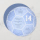 Este convite de aniversário temático de futebol bonito apresenta a imagem estilizada de uma bola de futebol que tem um padrão caleidoscópico sutil e artístico misturado com tons de azul poeirento, sobre os quais você pode personalizar todos os detalhes da festa - por katz_d_zynes