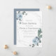 Chá de Bebê | rosas de cor azul-poeirenta rodeiam uma armação prateada do tipo terrário geométrico com verde-salva. O reverso é um azul empoeirado complementar. Personalizar texto, estilo de fonte, cor e tamanho. Arte original criada para justCards™ por © WhimsicalArtwork™ - Esta é parte de um Conjunto completo de Papel de Casamento com casamento, chá de fraldas e outros artigos de papelaria para eventos semelhantes.