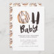 Espelhado com convite para chás de fraldas de rosquinha amorosa. Ilustrações de aquarela e texto com letra manual. Parte de uma coleção.