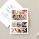 Um belo cartão de colagem de fotos quadrado estilo moderno, perfeito para agradecer aos convidados do chá de fraldas por presentes, amor e suporte recebidos, e apresentar seu pequeno ao mundo! A moderna imagem minimalista é uma colagem de 12 fotos personalizáveis quadradas. No centro, há o nome e a data de nascimento do seu bebê, em letras simples. Na parte de trás está a mensagem personalizável do seu obrigado. Através do botão "personalização", você pode substituir as fotos e alterar o texto.