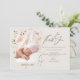Um elegante design floral "Our Little Wildflower" para um obrigado para uma menina recém-nascida, que você anuncia com um fundo de cor de marfim para familiares e amigos. Adicione detalhes pessoais e a foto da menina na frente e atrás para que seja sua.