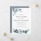 Chá de panela | rosas de cor azul empoeirada, com decoração verde de sábado deste Chá de panela - O reverso é um azul empoeirado elogioso. Personalizar texto, estilo de fonte, cor e tamanho. Arte original criada para o BarefootBride™ por © WhimsicalArtwork™ - Esta é parte de um Conjunto completo de Artes de Casamento, chá de fraldas e outros artigos de papelaria para eventos semelhantes.