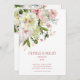 Um buquê floral moderno e elegante, de cor d'água branca, com sua sombra suavemente derramada no convite e espumantes pedaços e elementos de ouro, com seus primeiros nomes em uma fonte moderna com uma data numérica de casamento por baixo e uma pequena fonte para os detalhes. Esta luxuosa luxúria e esse convite branco é adequado para qualquer ocasião.