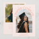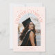Modern and whimsical graduation announcement photo card featuring an arched frame photo on the front and 1 on the back. The text says "Chapter Complete" with hand drawn stars. Add the graduate's name, information, and message to personalize this card. Peach background.