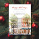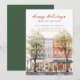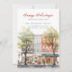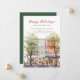 Este anúncio festivo de mudança para o feriado de Natal apresenta a frase "Feliz Natal da Nossa Nova Casa" com uma bela rua da cidade em aquarela com uma grande árvore de Natal. O anúncio é perfeito para enviar a amigos e familiares durante a temporada de festas para que saibam sobre o seu novo endereço. A frente do anúncio apresenta a frase e a cena da rua da cidade nevada em aquarela, e inclui seu novo endereço e informações de contato. O design geral é festivo e encantador, e o anúncio certamente colocará um sorriso nos rostos de seus entes queridos.