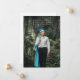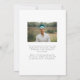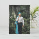 Frente: Uma foto sangrada por cheio do formando, com um ano grande e em negrito (por exemplo, "2025") no canto superior esquerdo, separada por uma linha da informação do formando, sobrepondo a imagem de forma elegante. Volta: Uma foto menor, com uma pequena mensagem de graduação embaixo da foto.